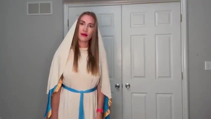 I am the Virgin Mary, and I catch my son masturbating with my clothes and pantyhose – such a sin. He should not give in to his sexual impulses – plus I am his mother! But then I notice we are alone, and I confess to you that I have always been a whore, and I don’t know who your father is since so many have put their seed inside me. I suck my son’s cock, and he gets harder the more I tell him so many degrading things. I also have a crown of thorns since the crucifixion is fake. I know he has a pantyhose fetish, and I show him my pantyhose and pull them down before Jesus licks my pussy juice (living water) then he fucks me and puts his seed inside me.